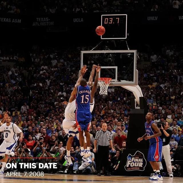不过查尔莫斯整个大学生涯,乃至整个职业生涯最亮眼的时候,发生在大学生涯的最后一场比赛里。NCAA疯三决赛,堪萨斯大学对阵罗斯所在的孟菲斯大学。